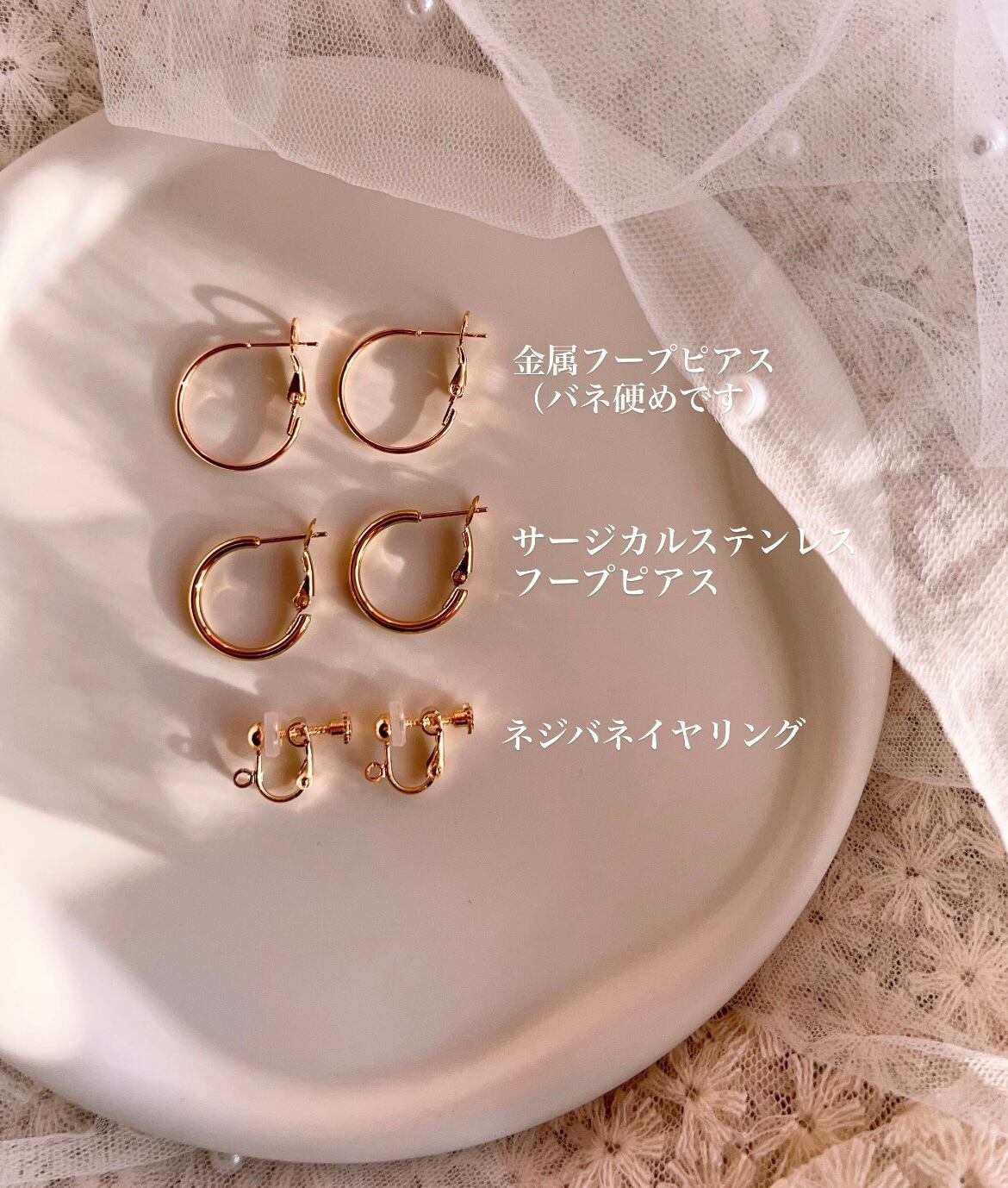 ※金属フープピアスはバネ硬めです。