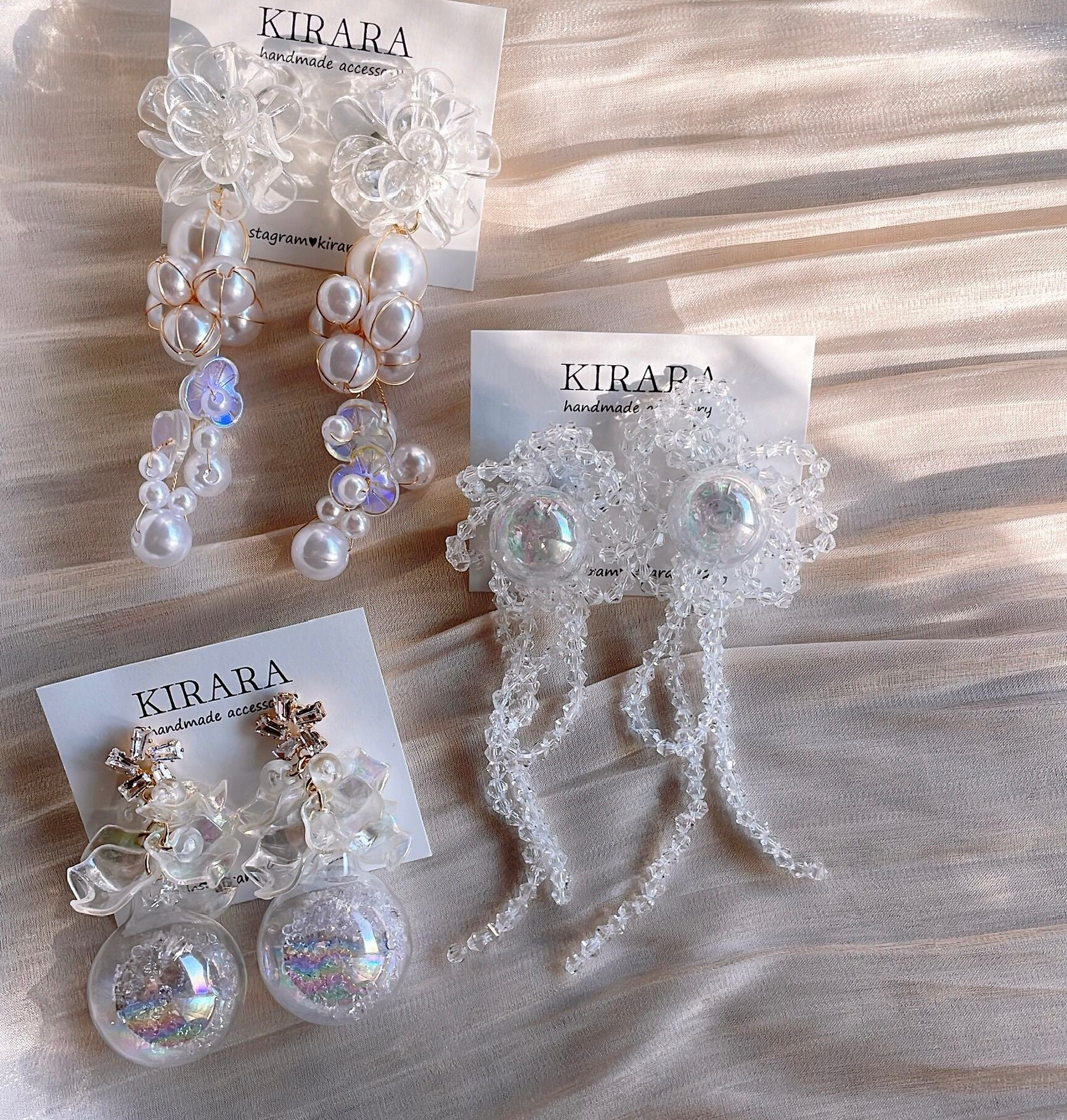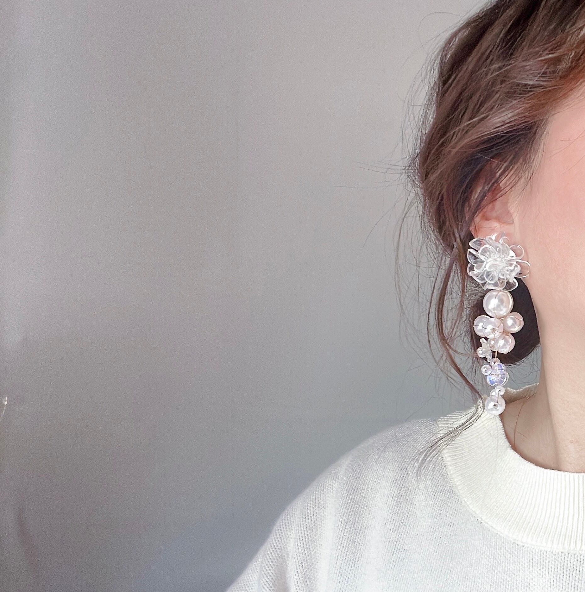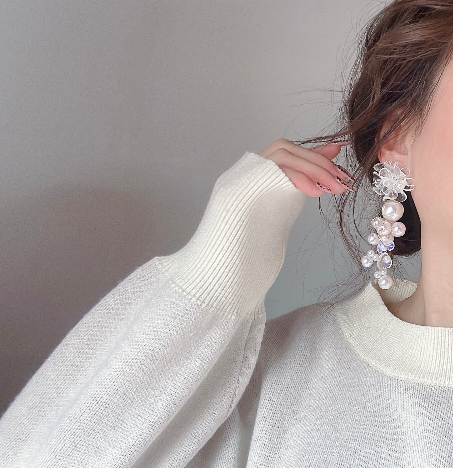 個性的なパールとフラワーのタッセル