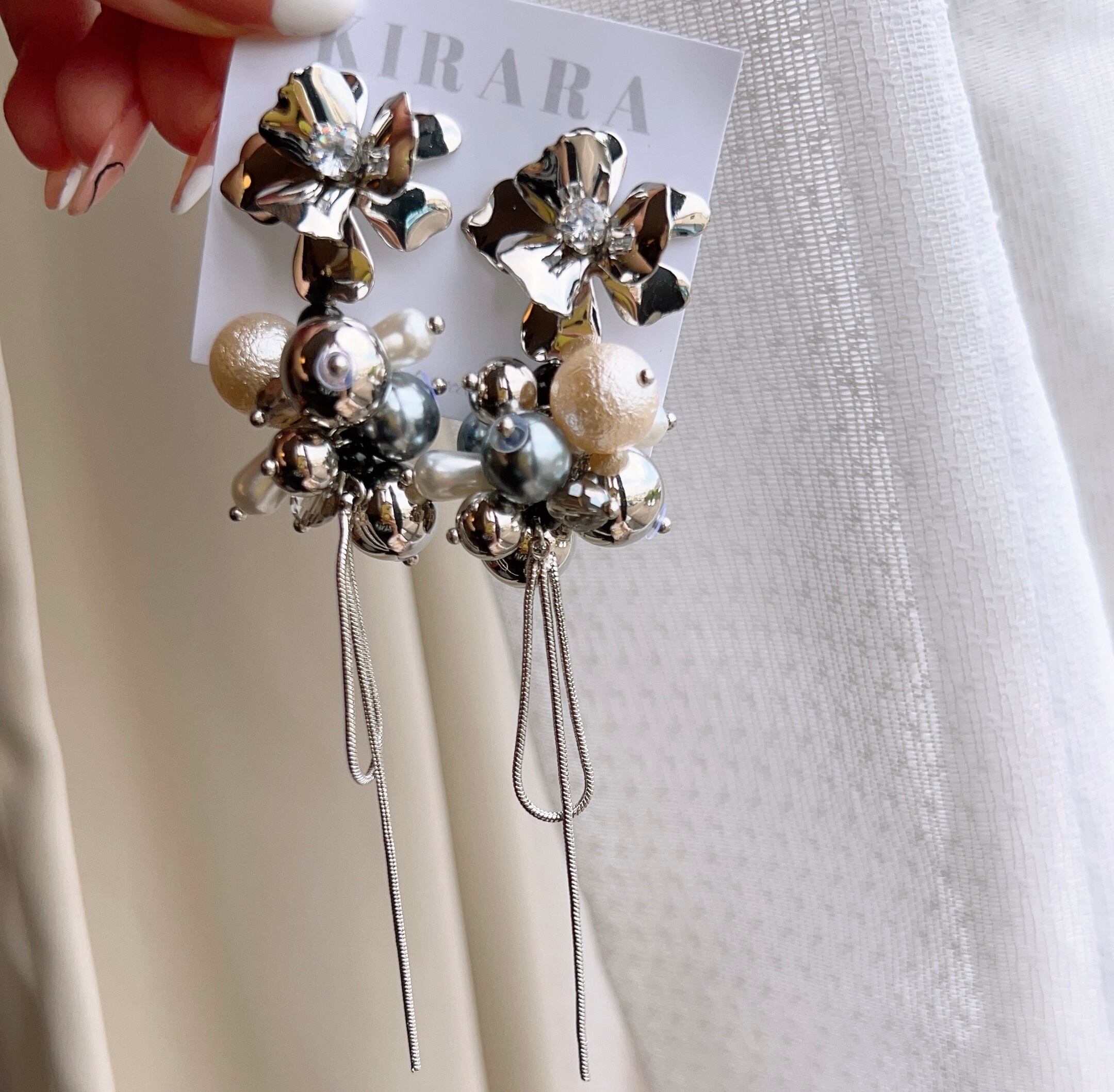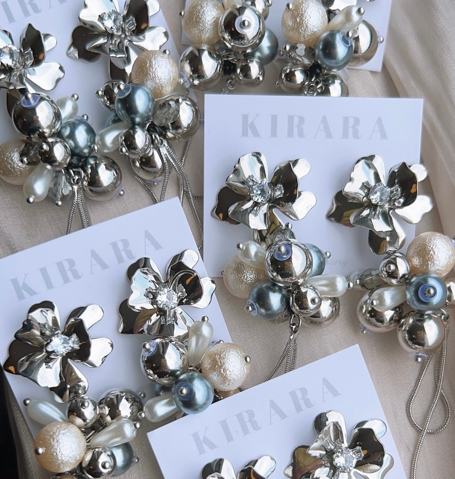 多種のシルバービーズ、パールを